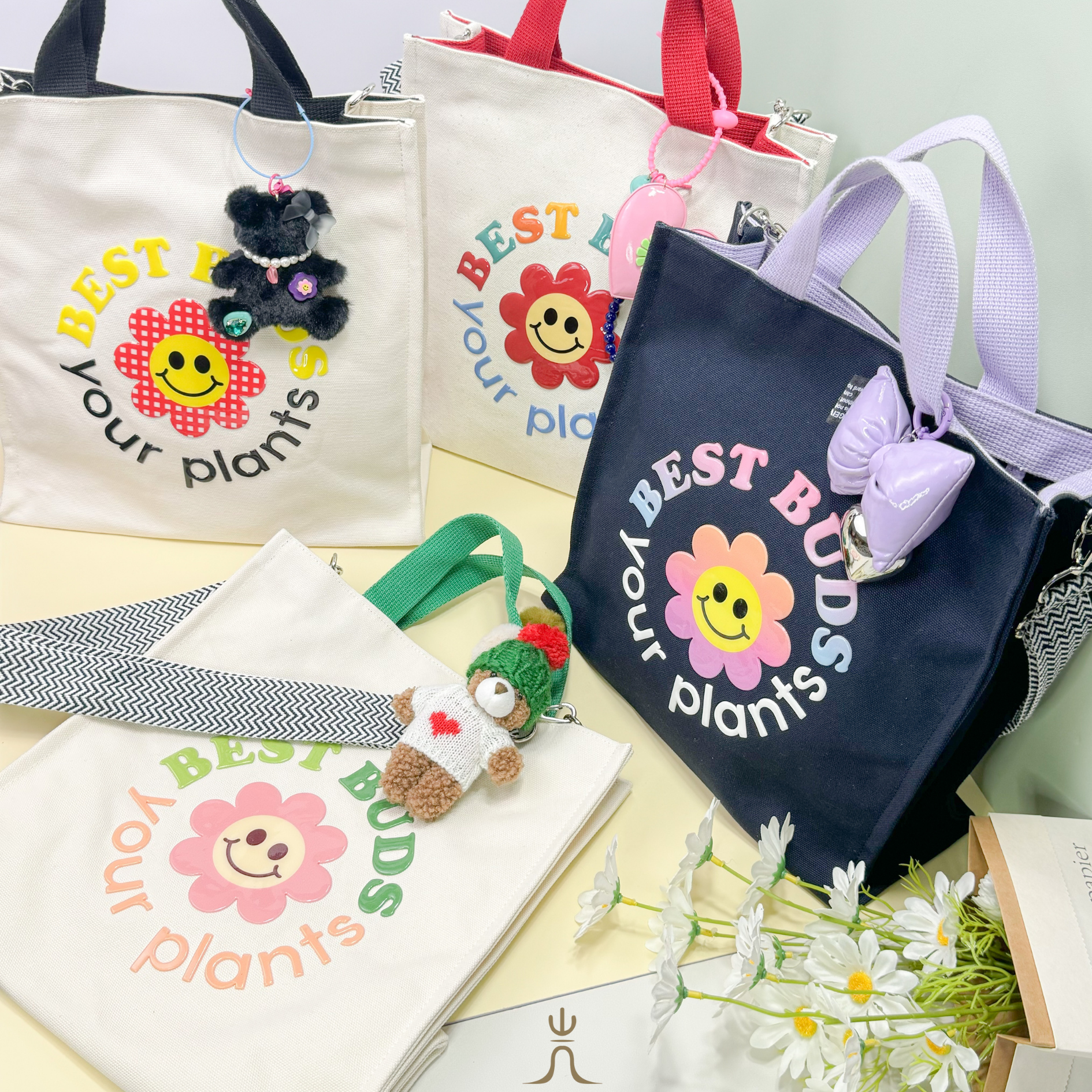 BEST BUNDS your plants 可愛笑臉花帆布包